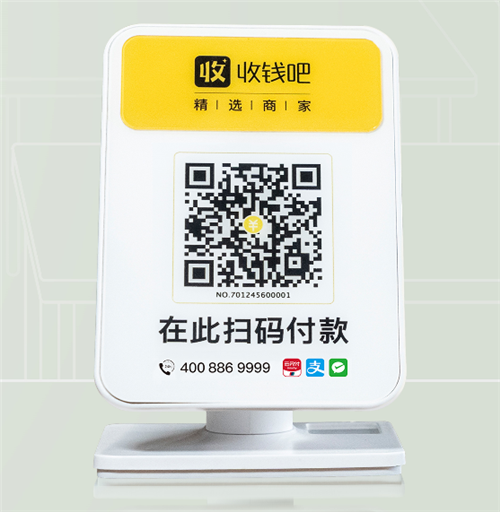 說起收錢吧全新升級的碼牌特色,最搶眼的就是它的高顏值,懸浮的外觀設計,線條流暢科技感十足,商戶無論將其擺放在何處,顧客都能一眼看到碼牌。其次,為了用戶使用的安全性,收錢吧還為每個碼牌印有每家店的店鋪名稱,顧客掃碼就能看到,防替換,收款更安全。此外,新的碼牌還有擺放穩和耐用的特點,超大底座,穩定支柱,怎么擺都不會倒,而且可以使用很久。