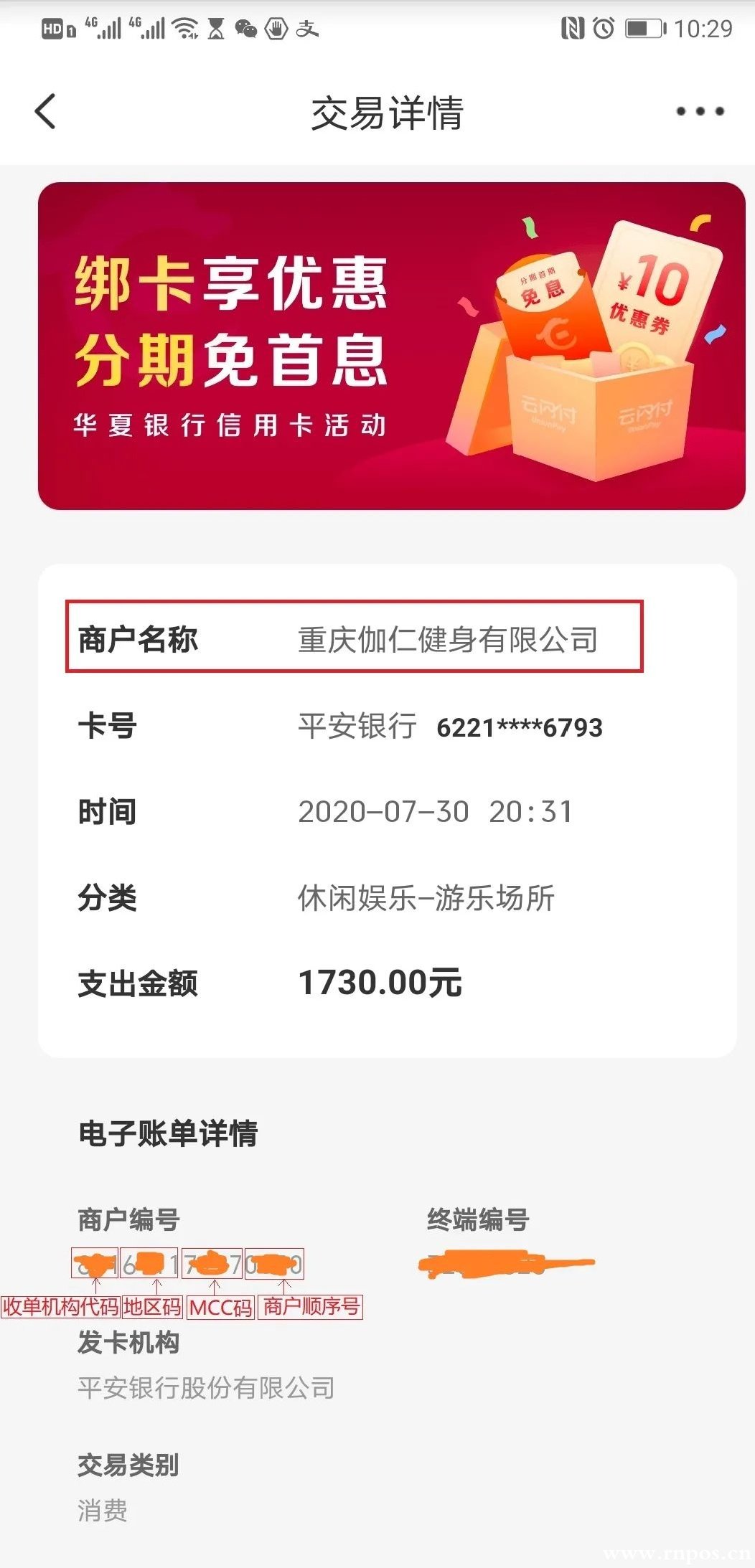 3、商戶類型不對:比如刷的是0.6費(fèi)率的餐娛類商戶,查詢后,卻跳到0.38費(fèi)率的優(yōu)惠類商戶,也叫跳MCC碼,而這個(gè)手續(xù)費(fèi)差價(jià)被支付公司吃掉了,銀行并沒有收到(如果長期跳碼到優(yōu)惠類、公益類商戶,很容易被銀行風(fēng)控,嚴(yán)重的會降額封卡)。