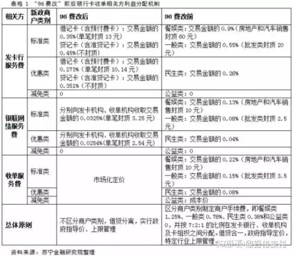 根據(jù)96費(fèi)改后的要求,對發(fā)卡銀行附加費(fèi)實(shí)行不再區(qū)分商戶類別。除此之外,商戶行業(yè)類別定價取消,總體上大幅降低了刷卡的pos機(jī)費(fèi)率水平。